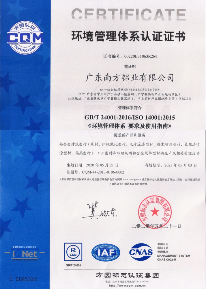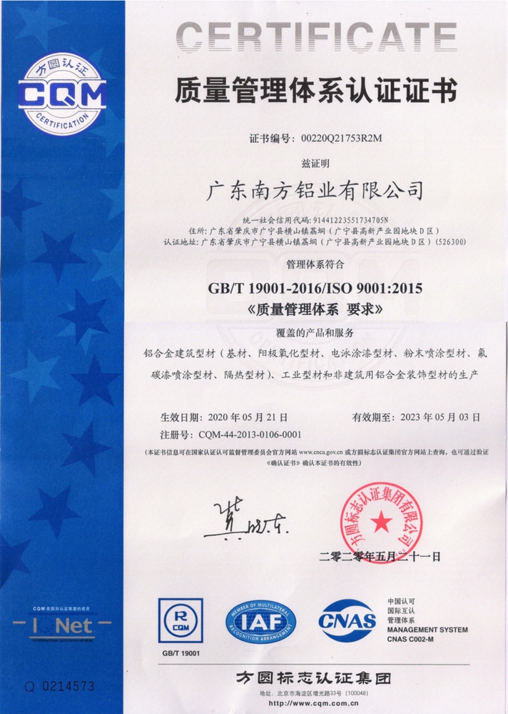 廣東南方鋁業(yè)有限公司成立于1992年,是一家集鋁臺(tái)金建筑型材、工業(yè)鋁型材和鋁臺(tái)金門(mén)窗幕墻研究、設(shè)計(jì)、生產(chǎn)及銷(xiāo)售于一體的綜合性大型企業(yè),生產(chǎn)基地位于廣東肇慶市廣寧縣,占地面積20多萬(wàn)平方米,是一個(gè)標(biāo)準(zhǔn)化、環(huán)保型、花園式的大型鋁材生產(chǎn)基地。